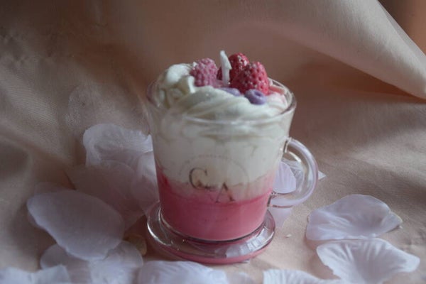 Bougie gourmande senteur fruit rouge à la cire végétale et au parfum de la ville de Grasse faite main.