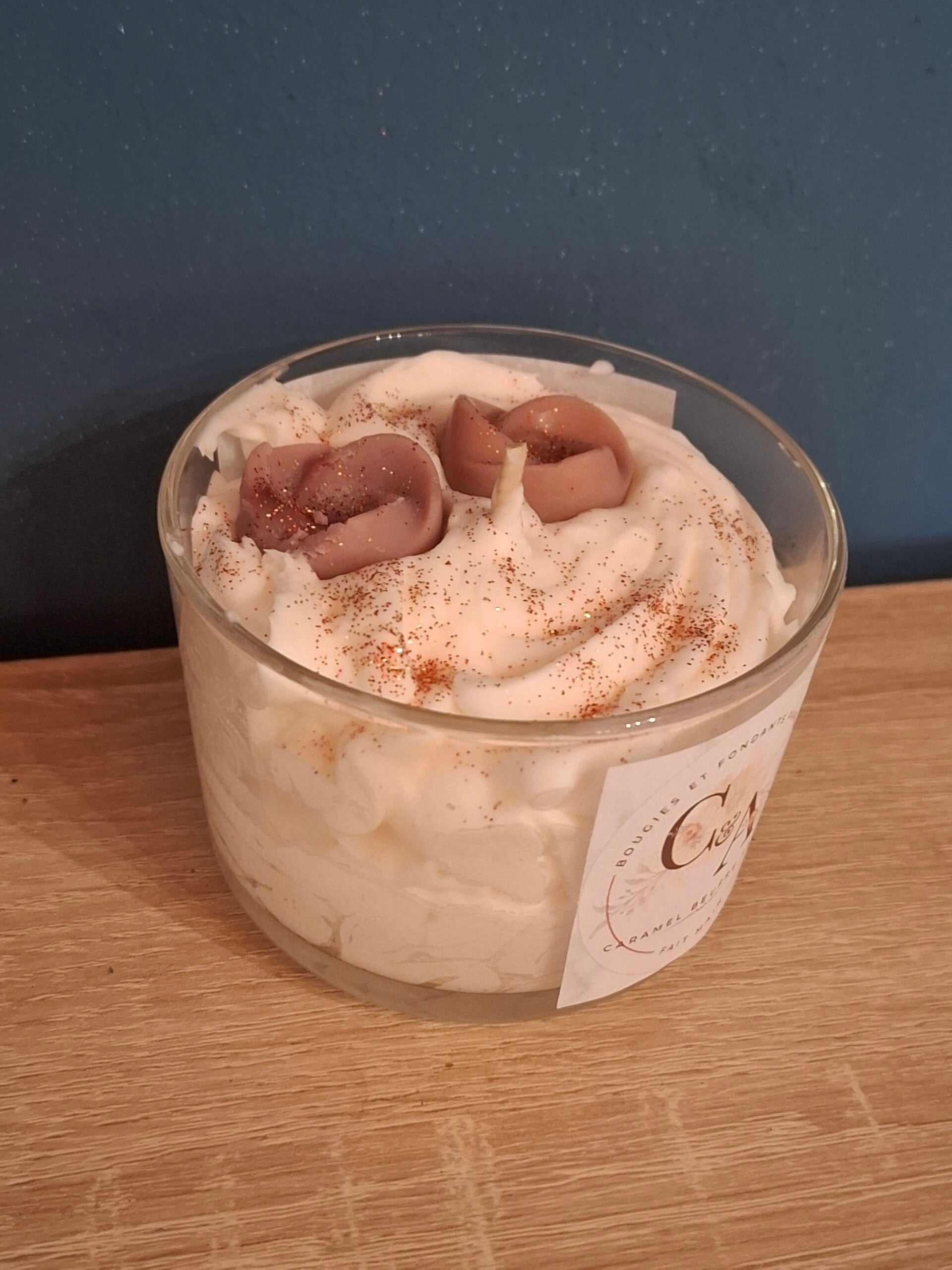 Chaque bougie est faite à la main, la couleur, la décoration peut être différente selon la production.