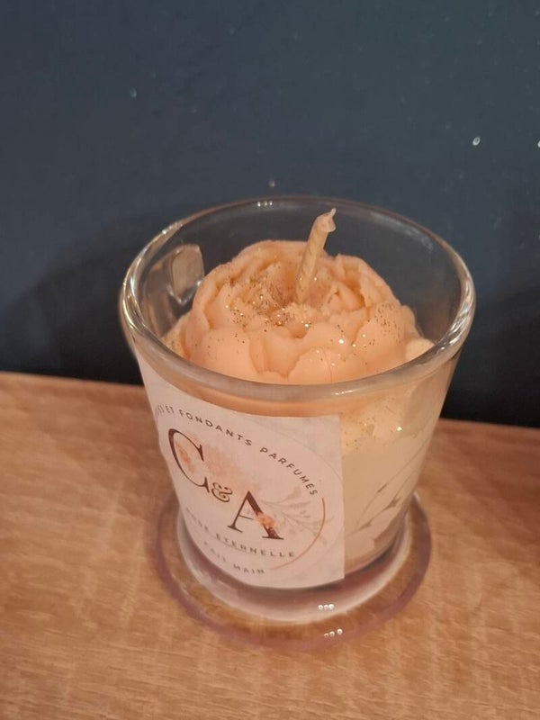 Bougie gourmande senteur Rose éternelle à la cire végétale et au parfum de la ville de Grasse faite main.
